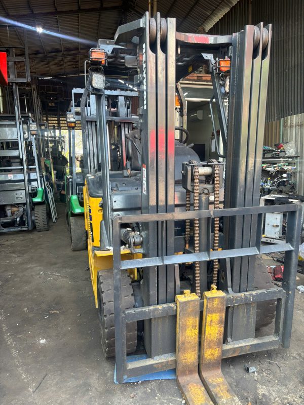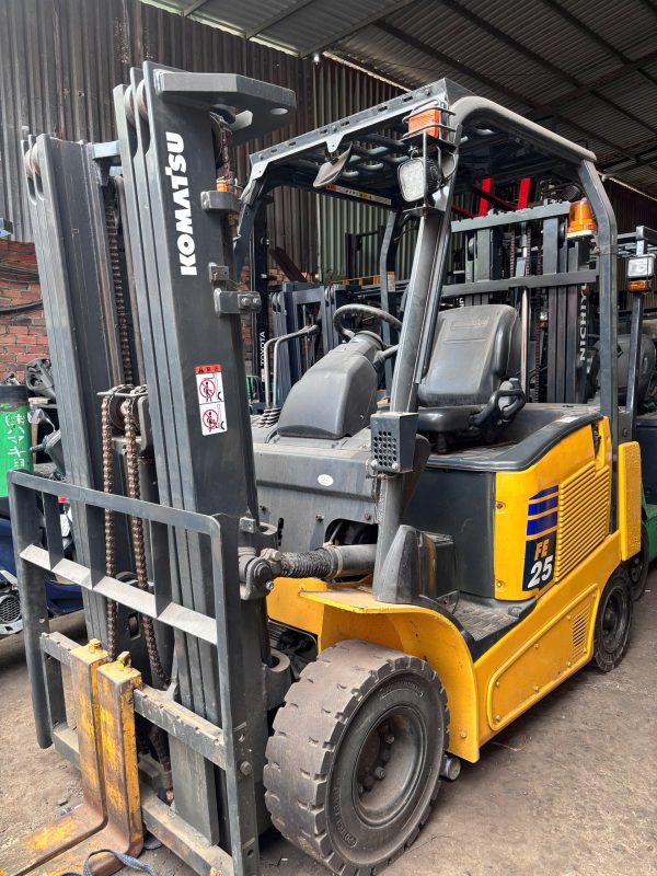 Xe nâng điện KOMATSU 2,5 Tấn thuộc dòng xe bền bỉ, tiết kiệm nhiên liệu, không khí thải và vận hành êm ái thích hợp sử dụng ở kho xưởng, logistics, môi trường kín không khí thải.