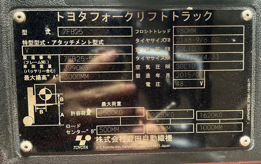 | MODEL | 7FB25 | SỐ SERI | 7FB25-55043 |